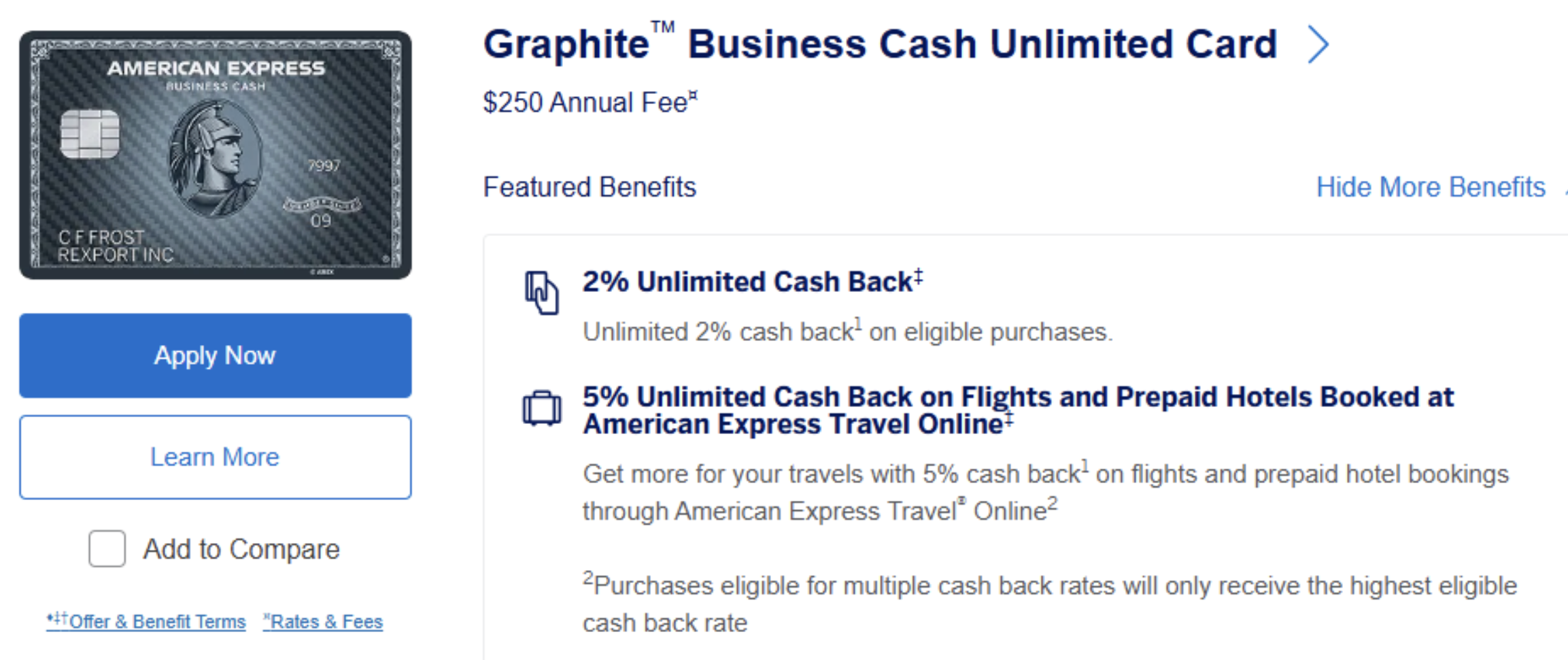 情報筋によると、アメリカン・エキスプレスのグラフィックが流出し、年会費250ドルの「グラファイト・ビジネス・キャッシュ・アンリミテッドカード」が登場する可能性があることが示されています。このカードは、すべての購入で2%のキャッシュバックが得られ、アメリカン・エキスプレス・トラベルを通じて予約したフライトやホテルでは5%のキャッシュバックが得られるとされています。