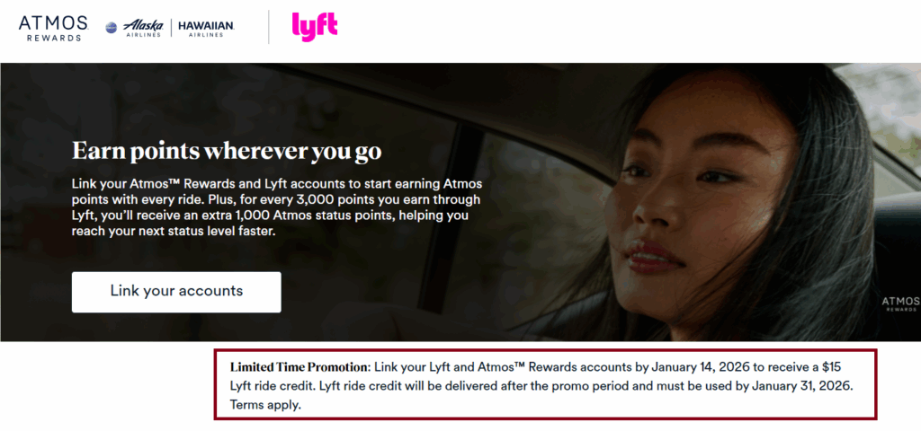 LyftでアラスカのAtmosをリンクして15ドルのクレジット獲得