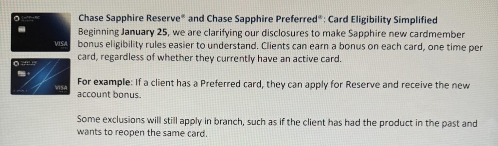 Chase Sapphire Reserve for Businessの新しいボーナス変更