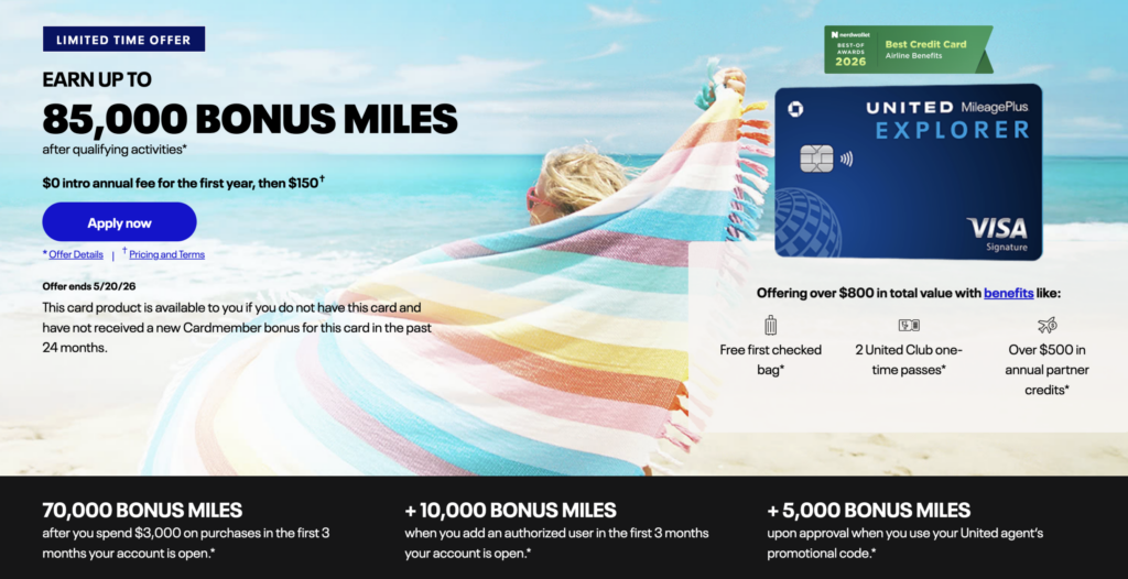 Chase United Explorerカードの85,000ポイントボーナス