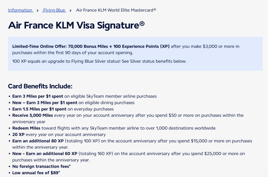バンク・オブ・アメリカのエアフランス/KLMカードの特典