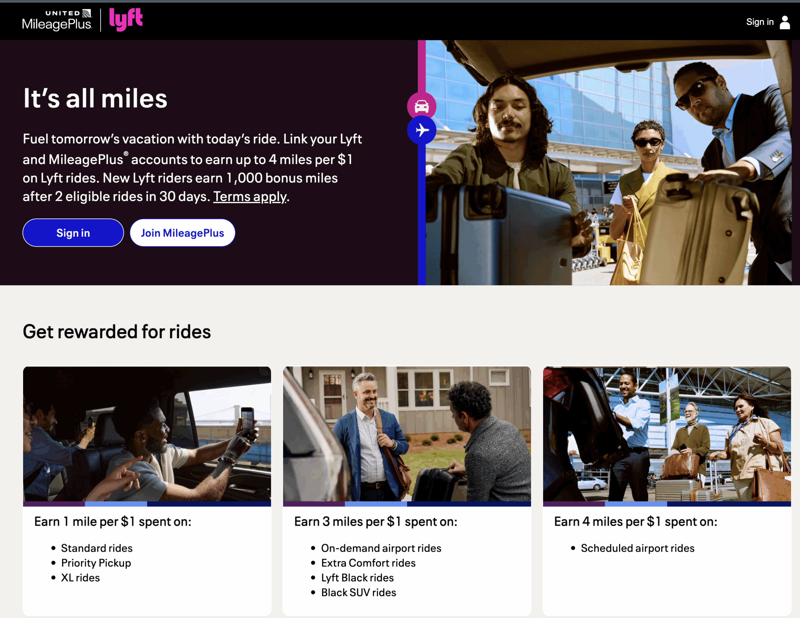 ユナイテッド航空は、Lyftとの提携を発表し、Lyftの乗車ごとに支払った金額に応じてマイルを獲得できるようになります。